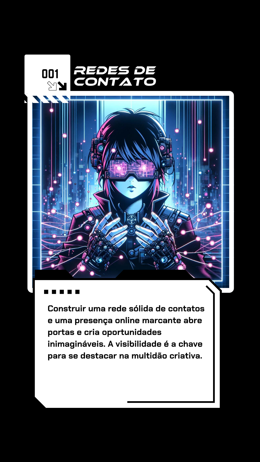 Construir uma rede sólida e uma presença online nos posiciona para sucesso e colaborações significativas dentro da comunidade criativa digital.