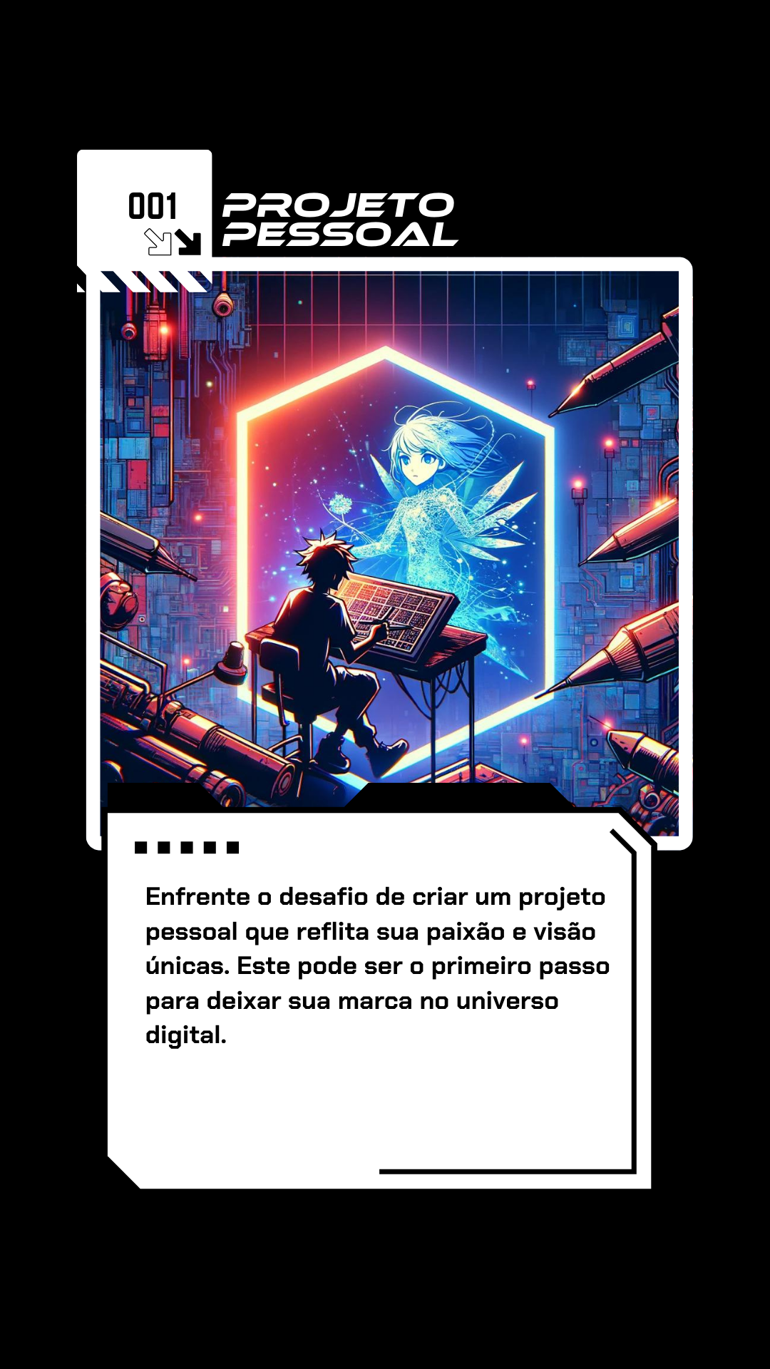 Desafiaremos a nós mesmos com projetos que reflitam nossas paixões e visões, utilizando a tecnologia para dar vida a nossas criações mais audaciosas.